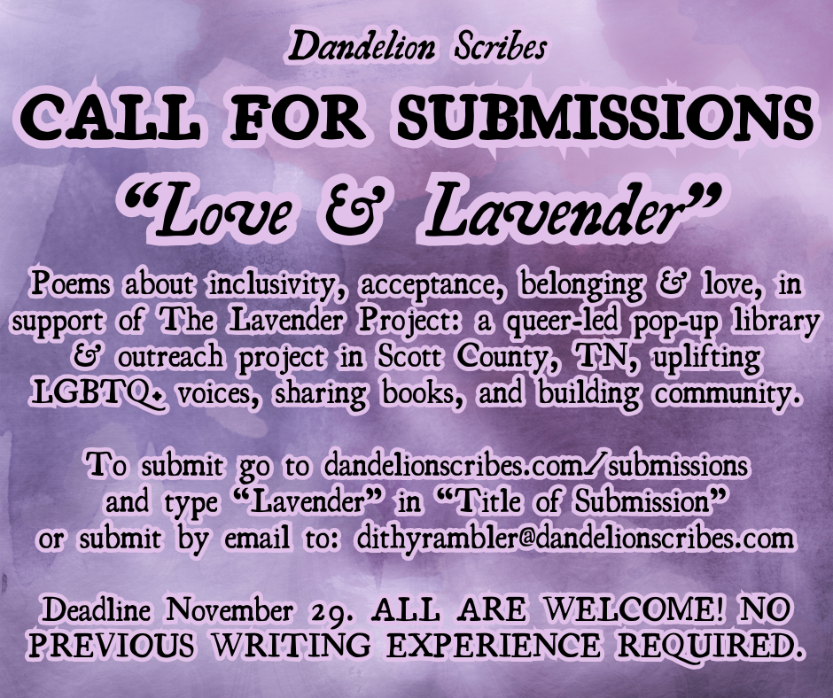Alternatively, you may email your work to dithyrambler@dandelionscribes.com. Be sure to include all necessary information as listed in the form below.